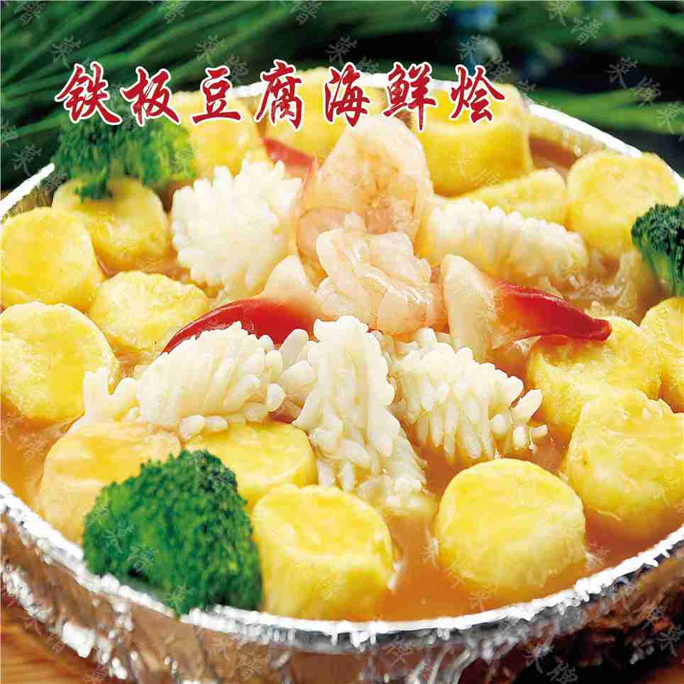 铁板豆腐海鲜烩