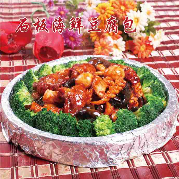 石板海鲜豆腐包