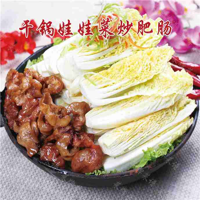 干锅娃娃菜炒肥肠