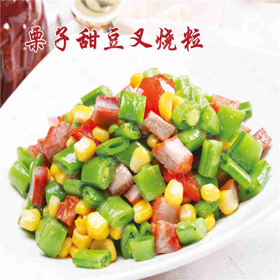 栗子甜豆叉烧粒