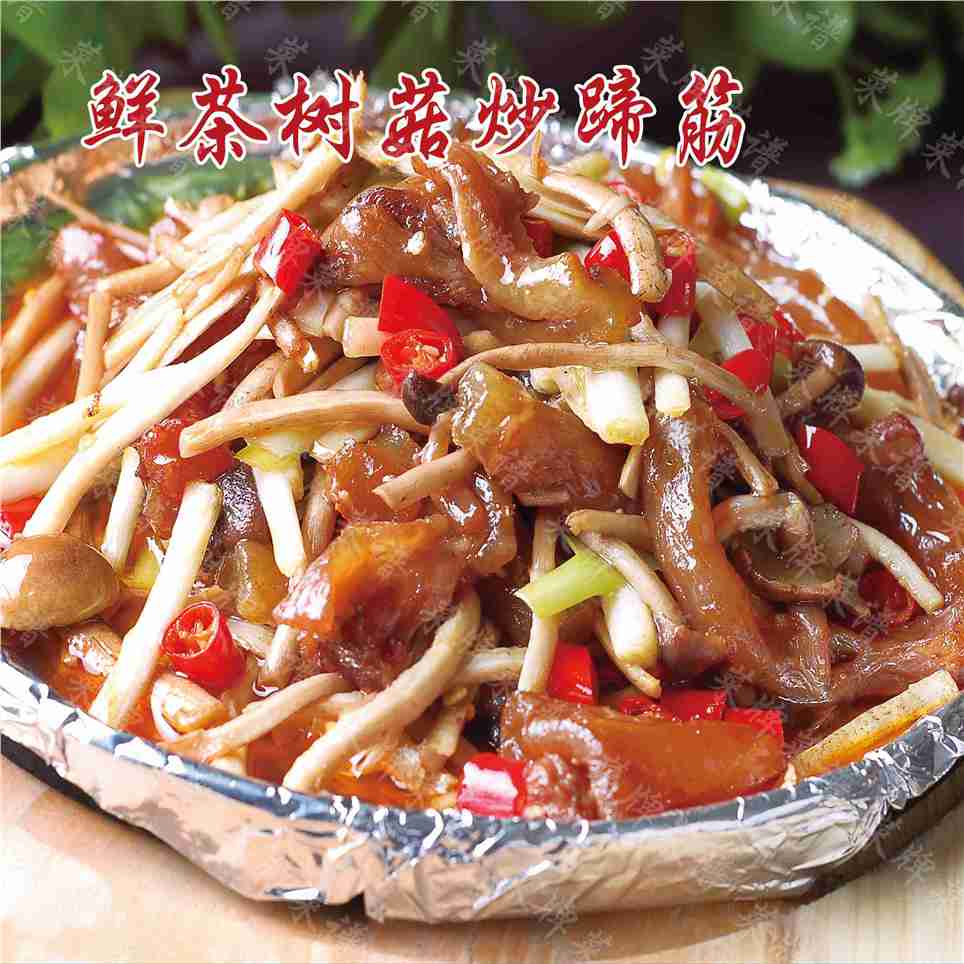 鲜茶树菇炒蹄筋