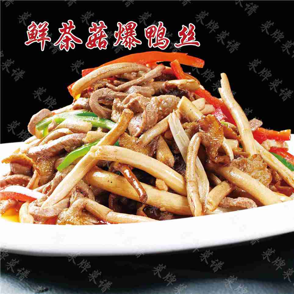 鲜茶菇爆鸭丝