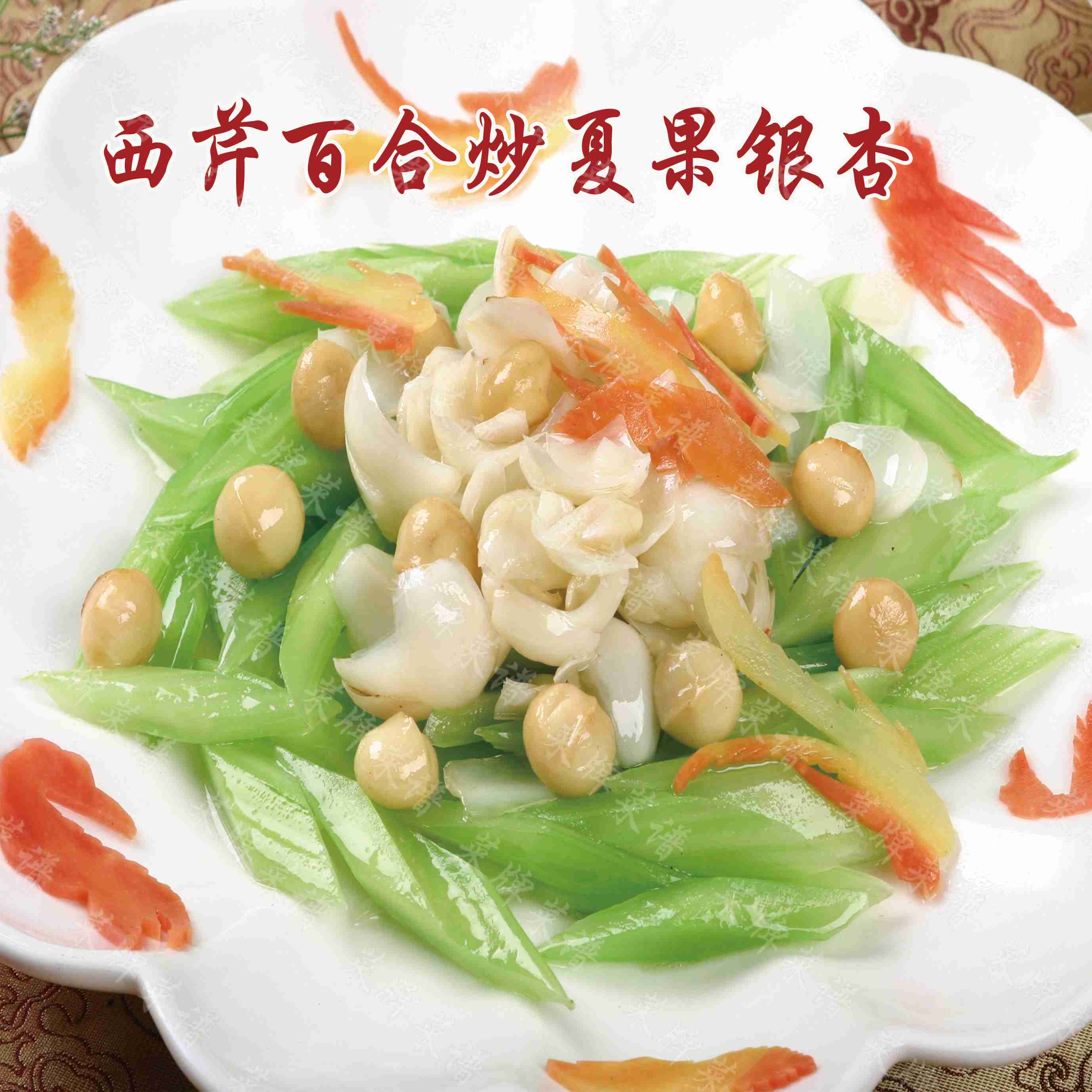 西芹百合炒夏果银杏