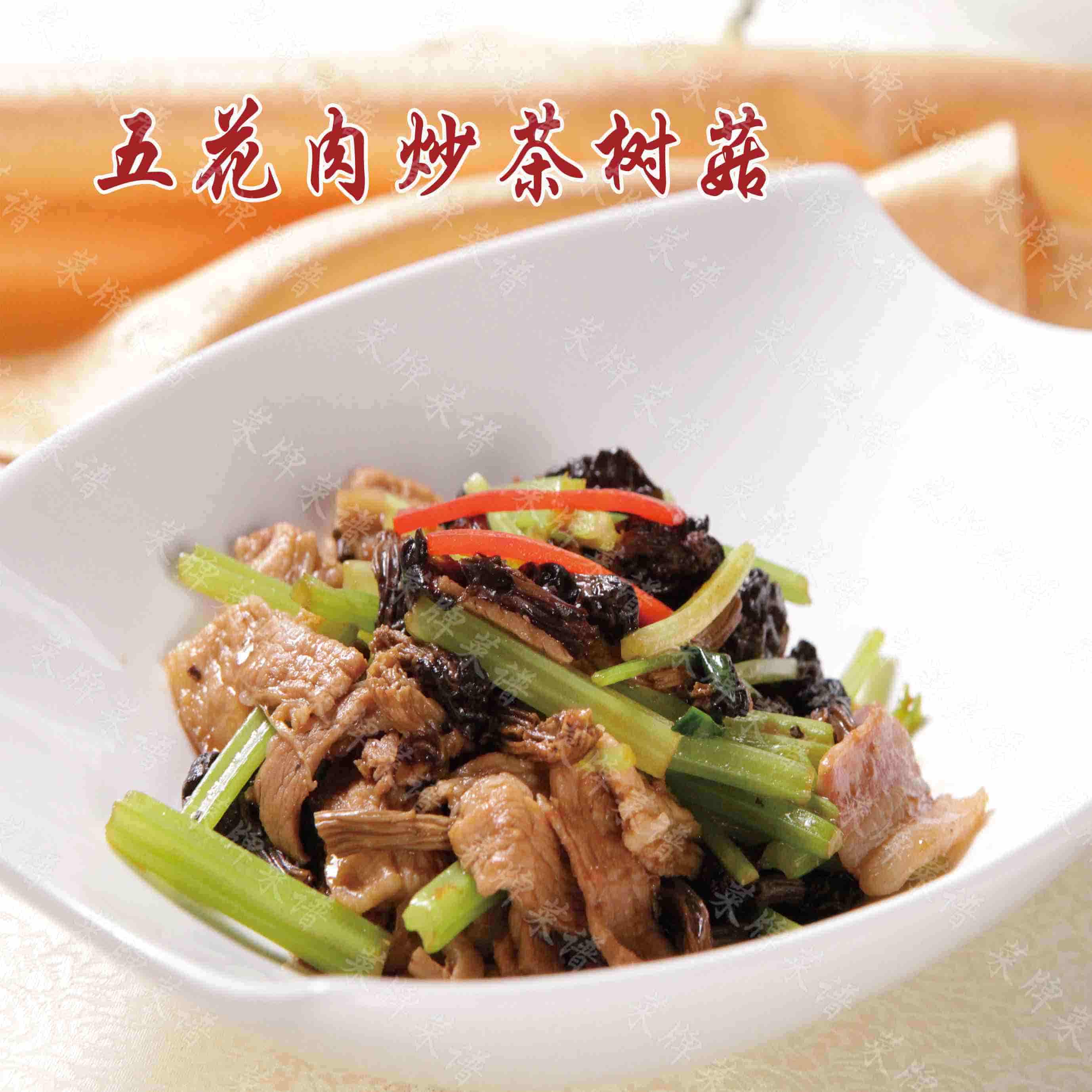 五花肉炒茶树菇